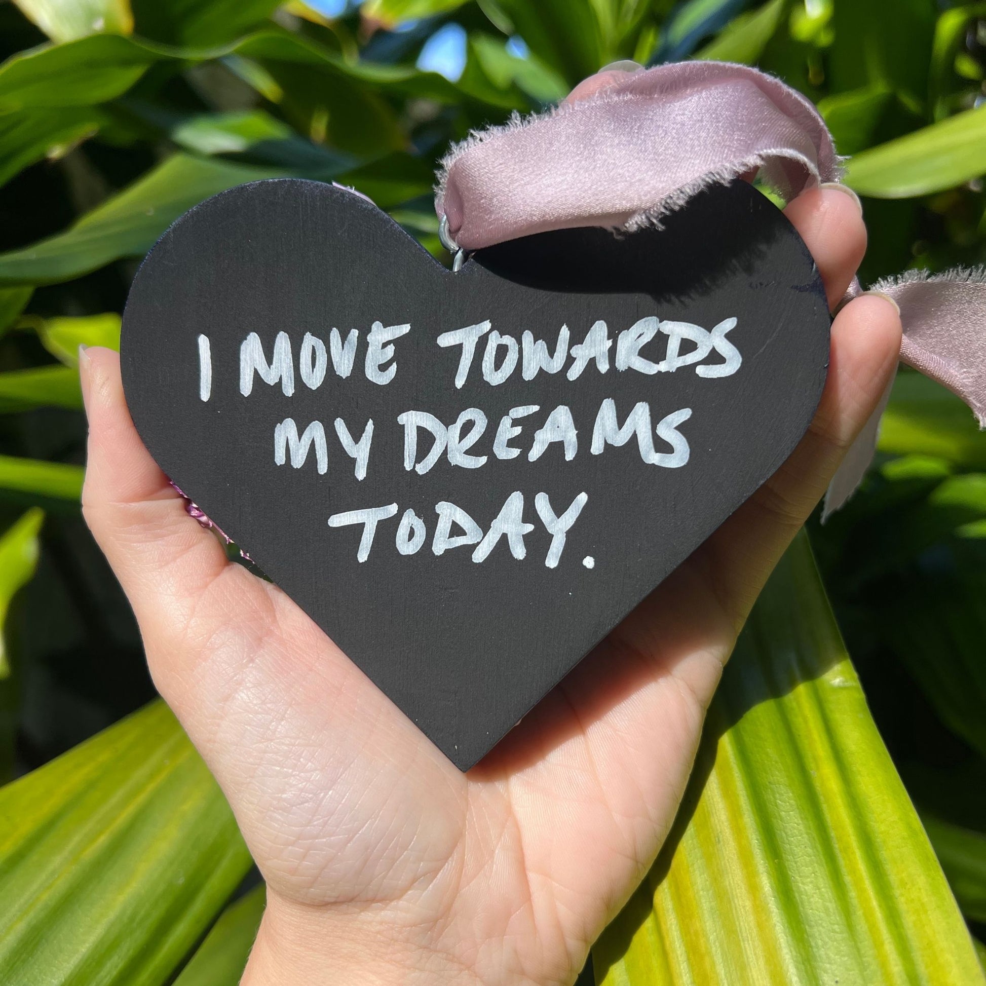 Invite in love energy of the heart shape to your space with a positive affirmation on the back of the heart ornament