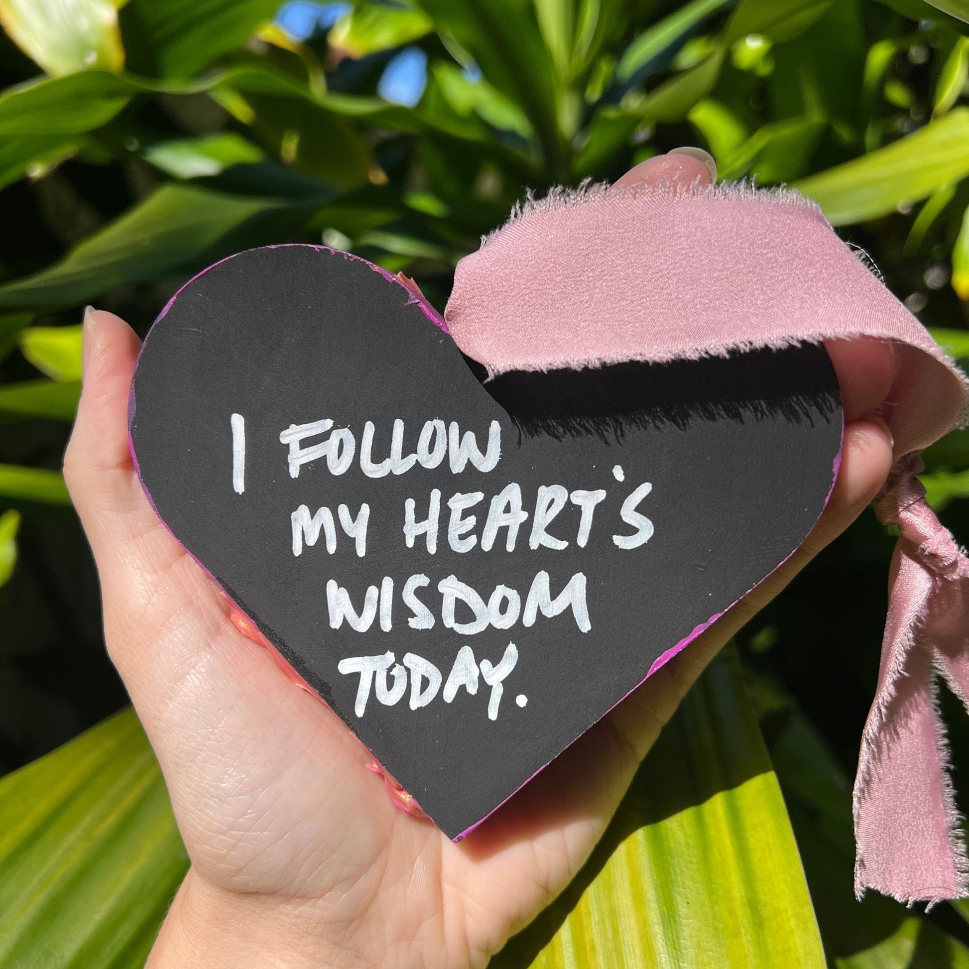 Invite in love energy of the heart shape to your space with a positive affirmation on the back of the heart ornament