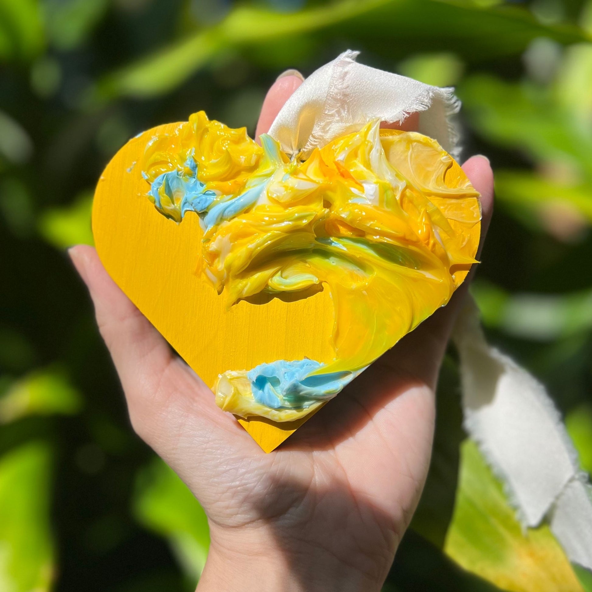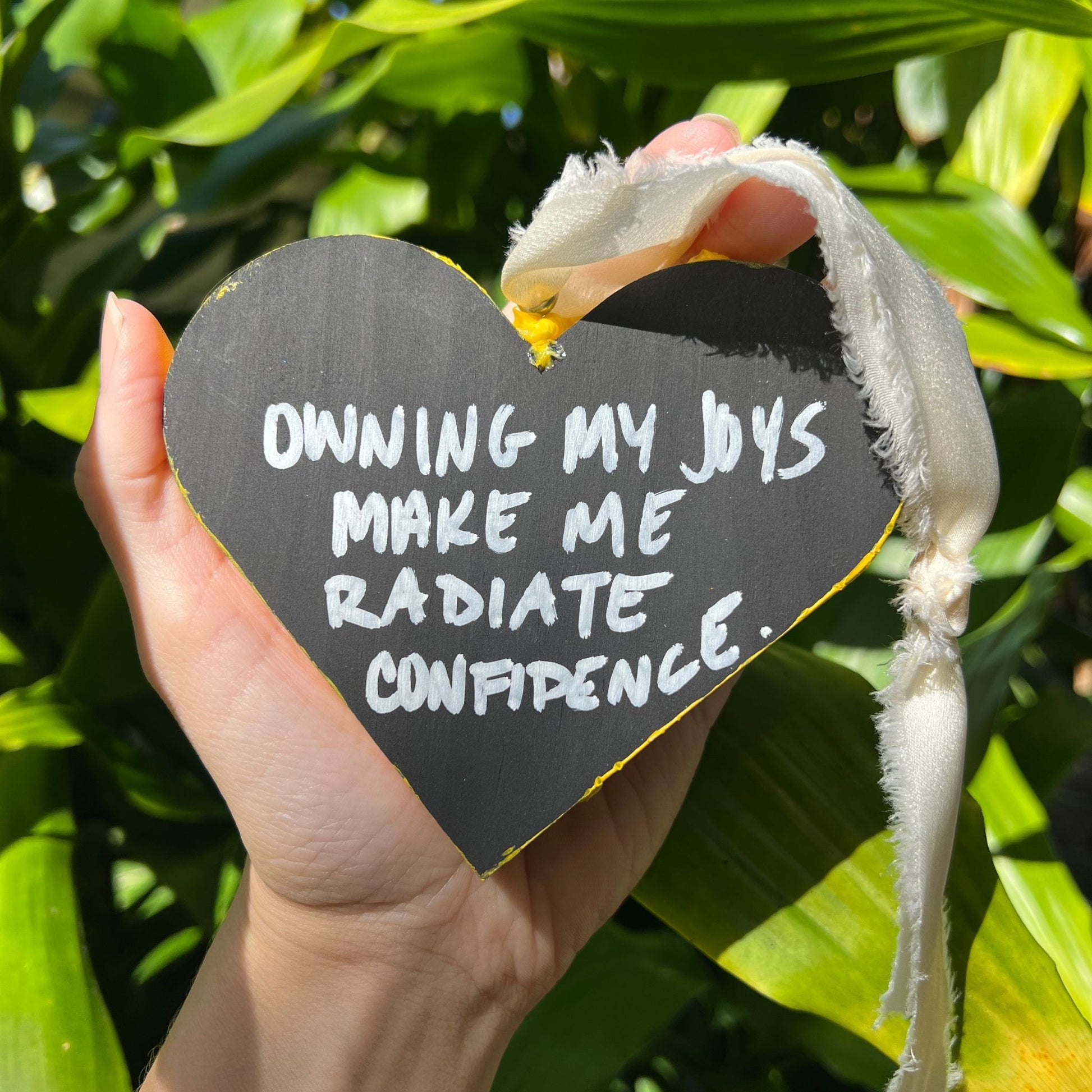 Invite in love energy of the heart shape to your space with a positive affirmation on the back of the heart ornament