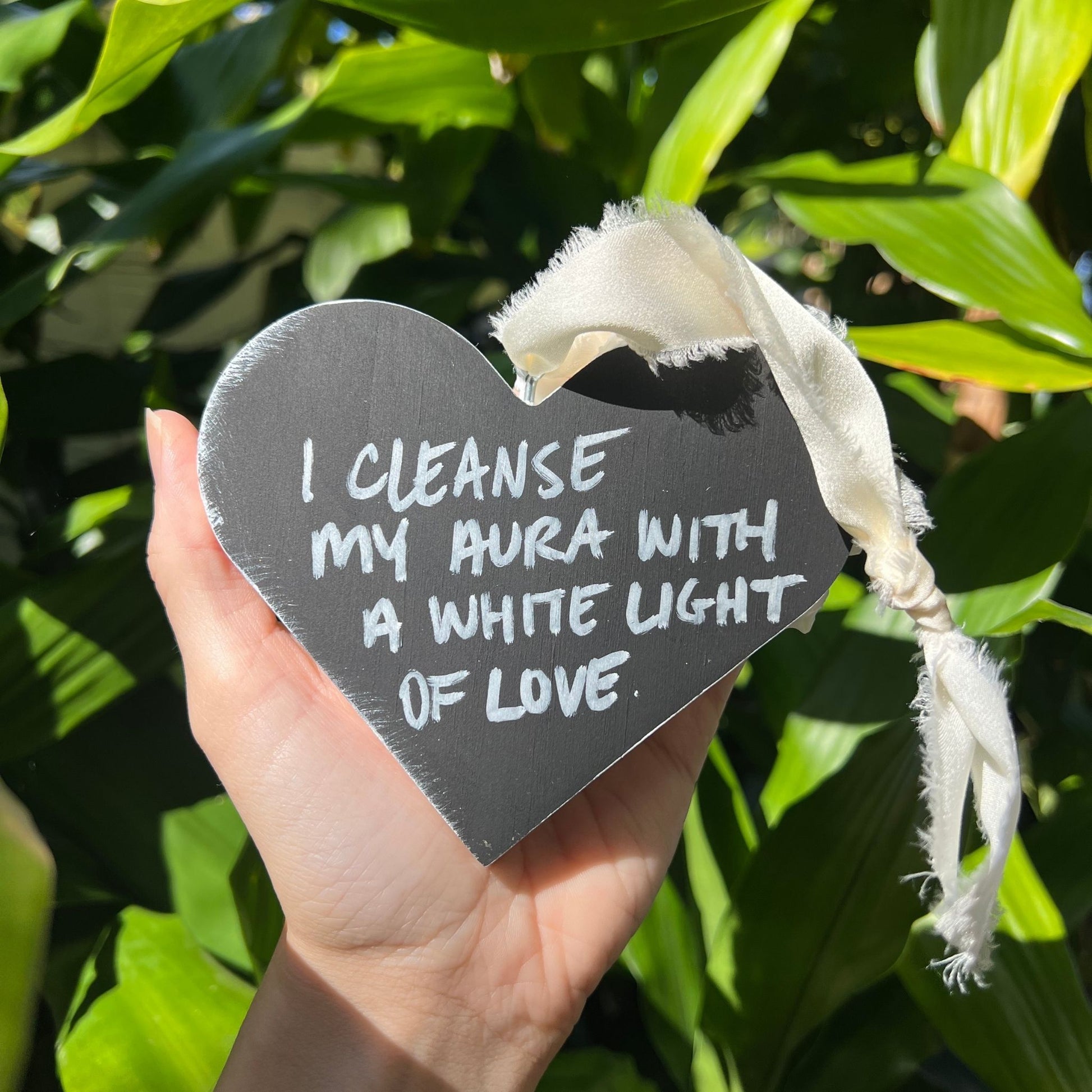Invite in love energy of the heart shape to your space with a positive affirmation on the back of the heart ornament