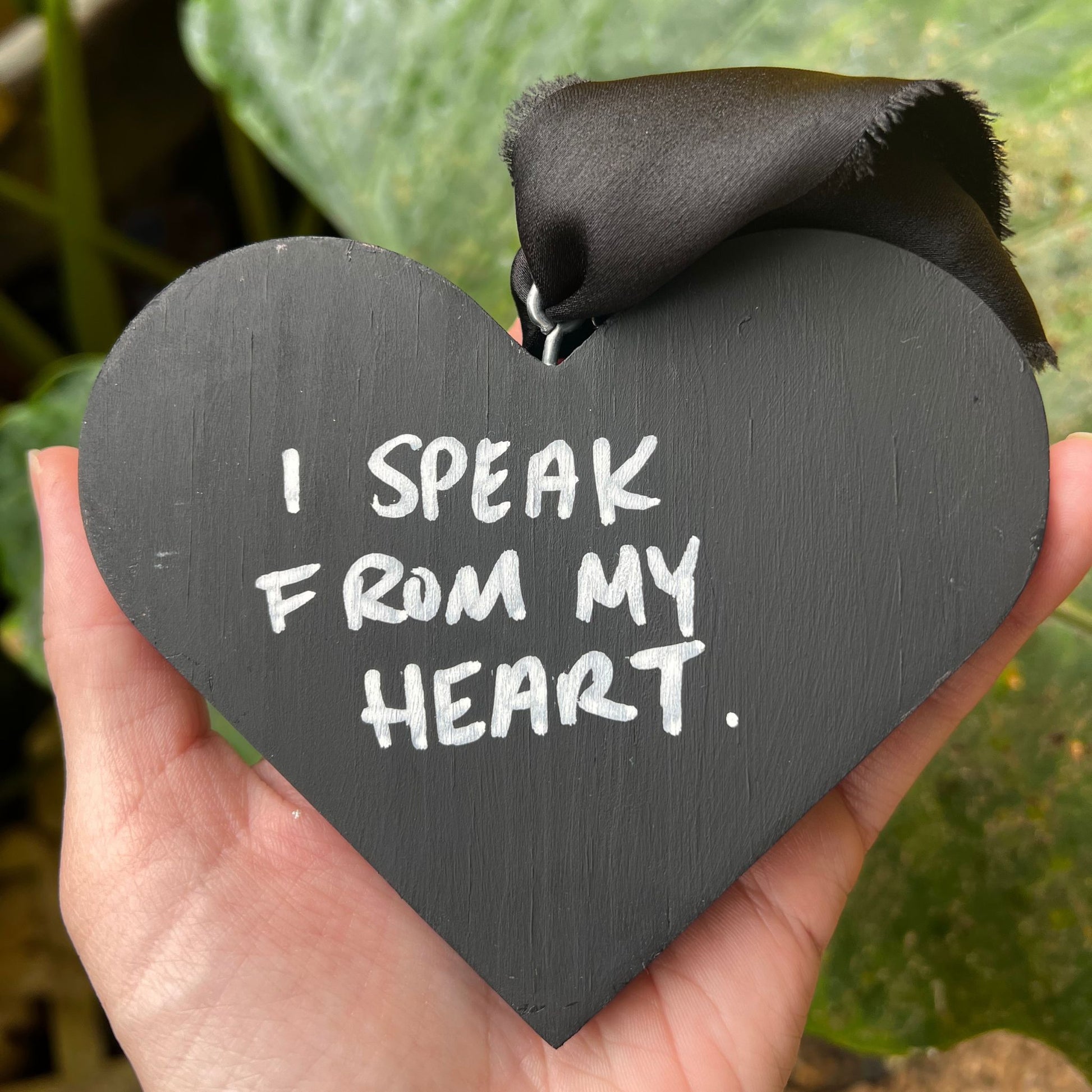 Invite in love energy of the heart shape to your space with a positive affirmation on the back of the heart ornament