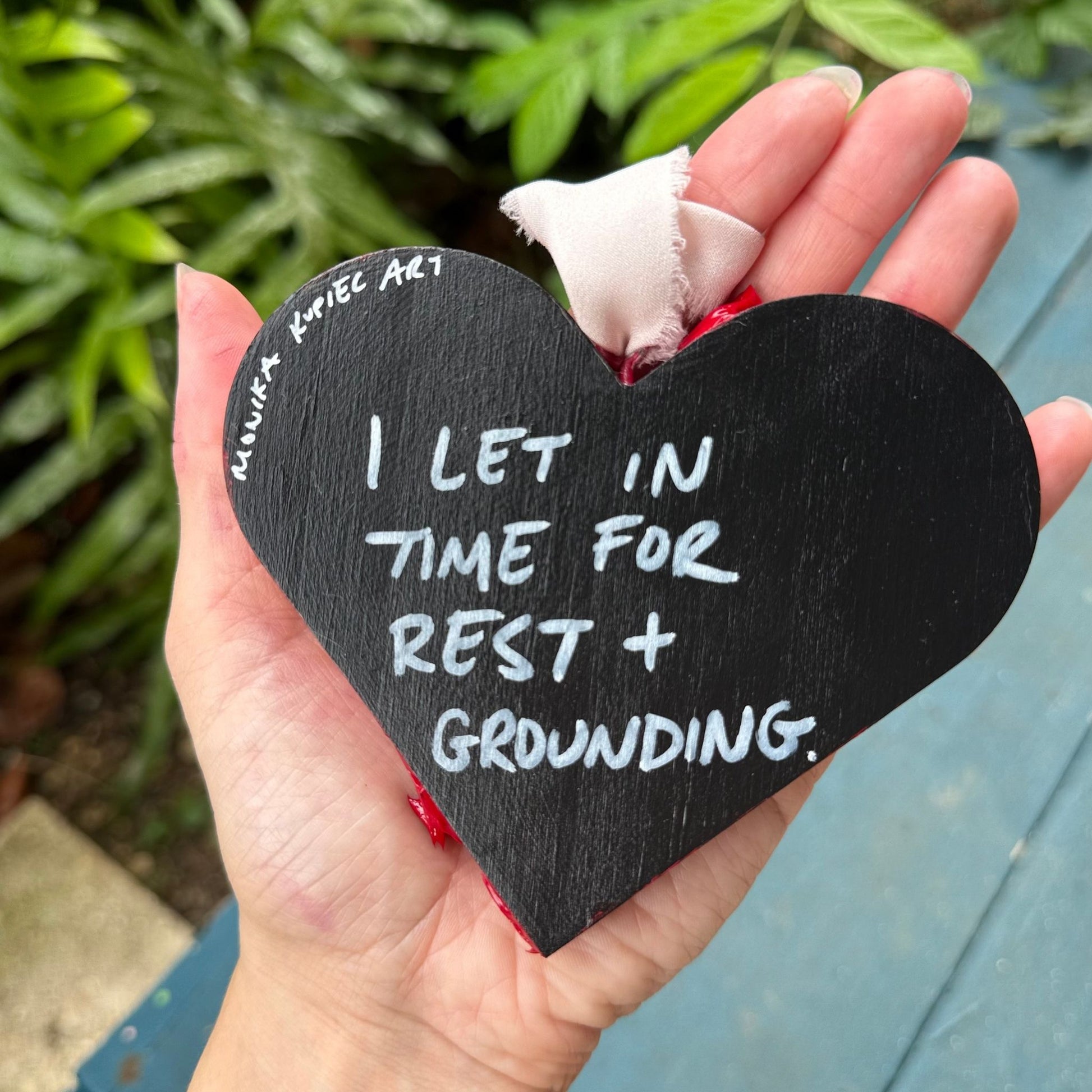 Invite in love energy of the heart shape to your space with a positive affirmation on the back of the heart ornament