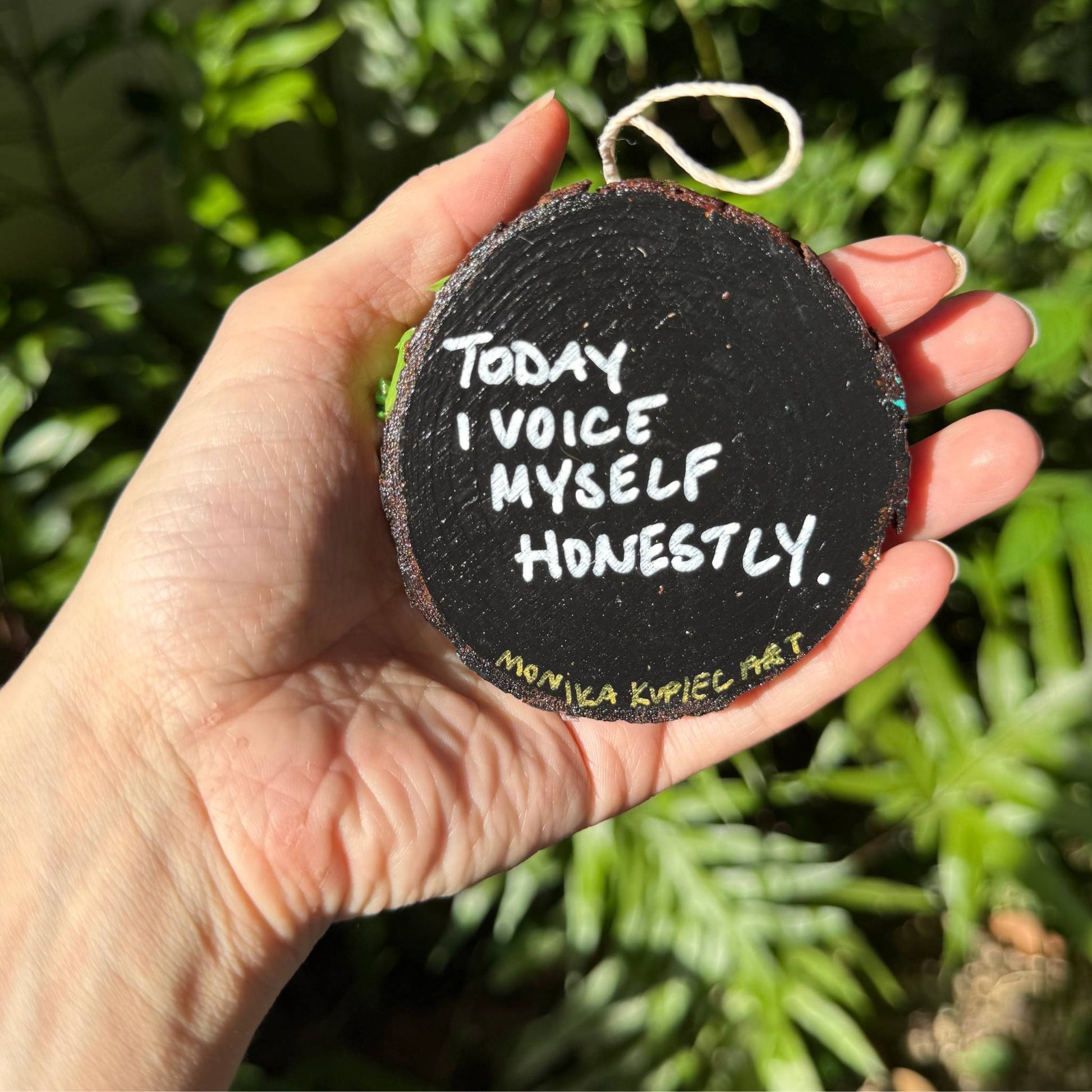 Fill your space with channeled colors + positive messages by displaying this energy infused affirmation wood circle decor on your tree, work desk, nightstand or kitchen.
