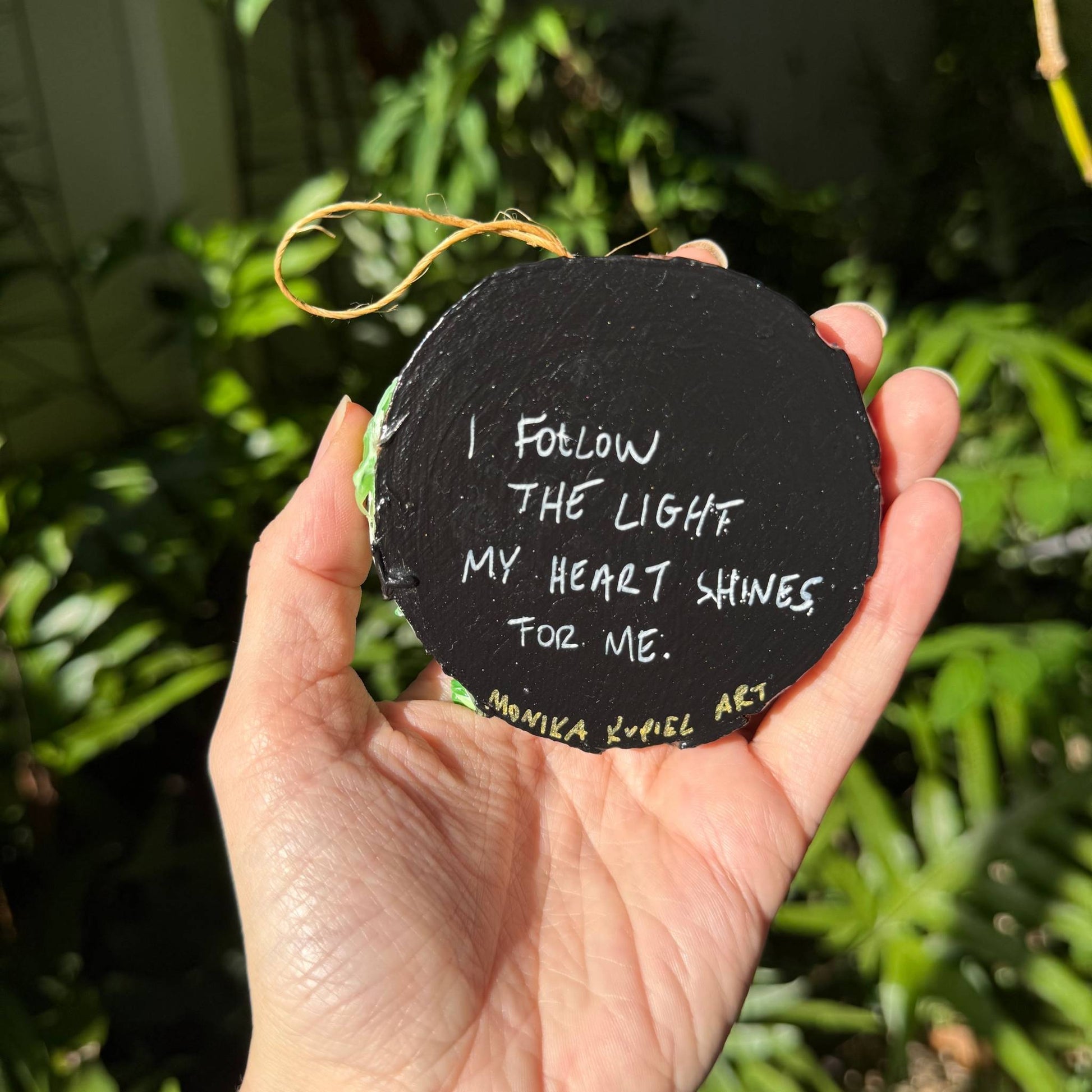 Fill your space with channeled colors + positive messages by displaying this energy infused affirmation wood circle decor on your tree, work desk, nightstand or kitchen.