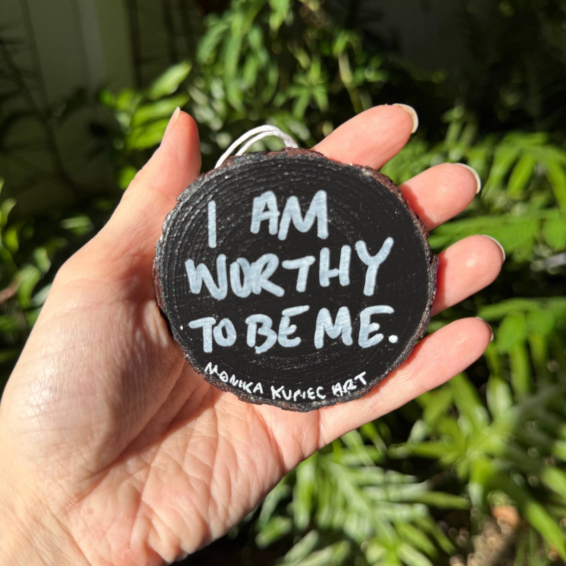 Fill your space with channeled colors + positive messages by displaying this energy infused affirmation wood circle decor on your tree, work desk, nightstand or kitchen.