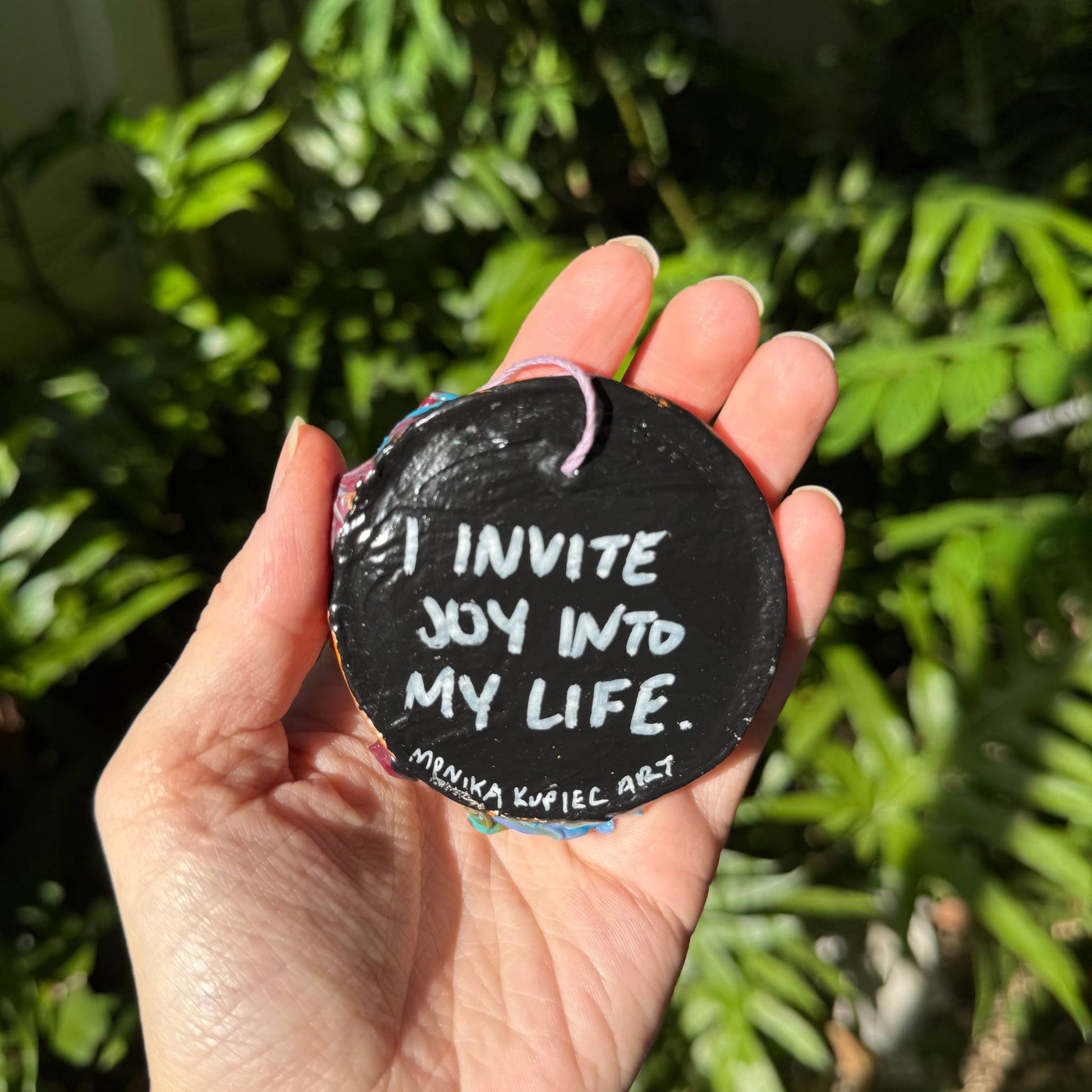 Fill your space with channeled colors + positive messages by displaying this energy infused affirmation wood circle decor on your tree, work desk, nightstand or kitchen.
