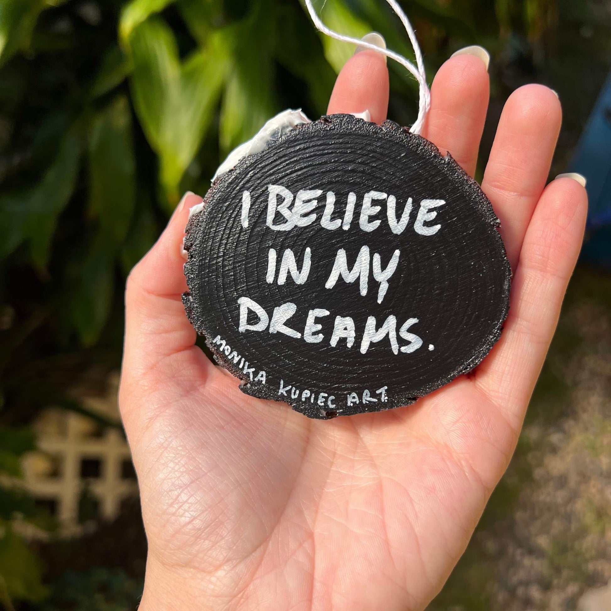 Fill your space with channeled colors + positive messages by displaying this energy infused affirmation wood circle decor on your tree, work desk, nightstand or kitchen.