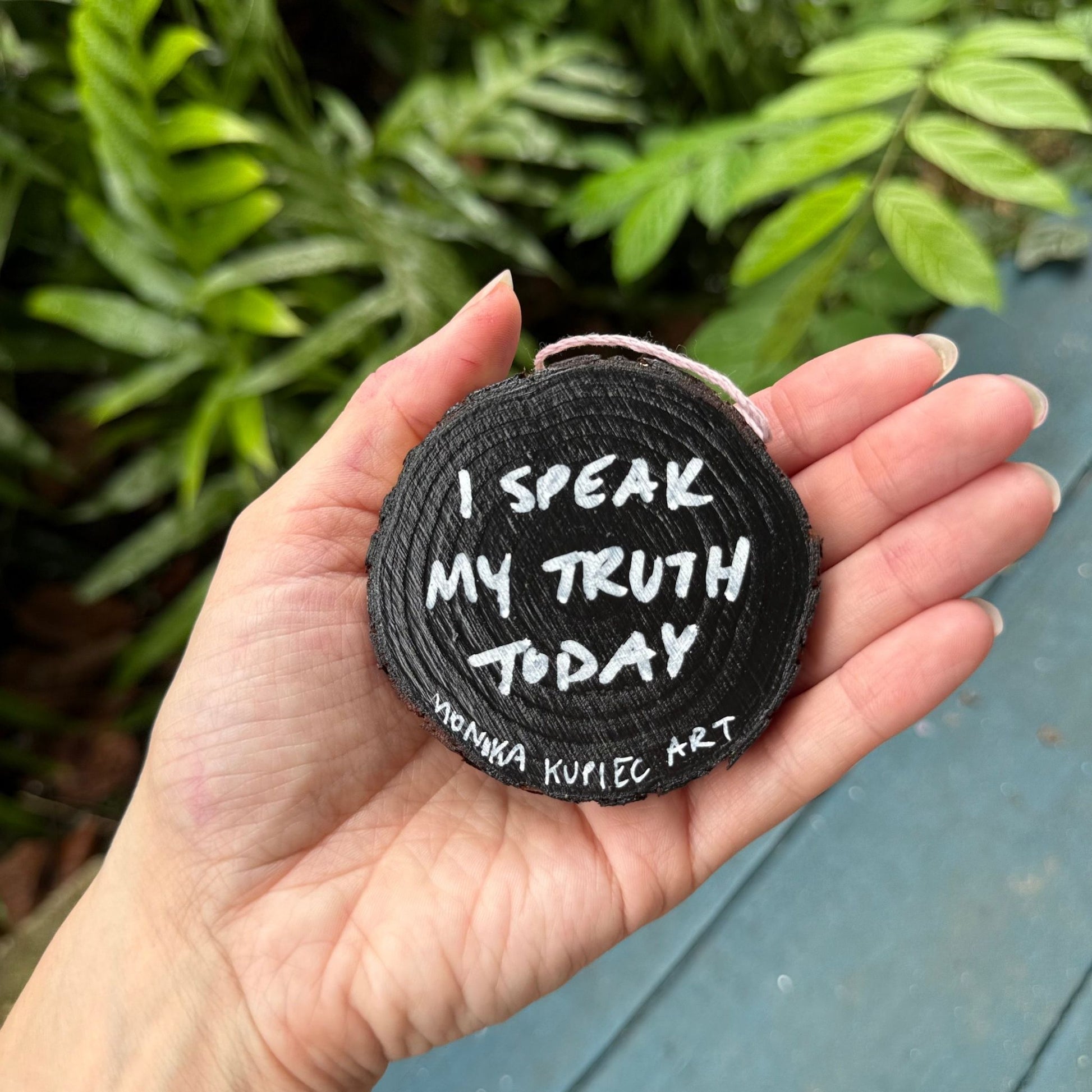 Fill your space with channeled colors + positive messages by displaying this energy infused affirmation wood circle decor on your tree, work desk, nightstand or kitchen.