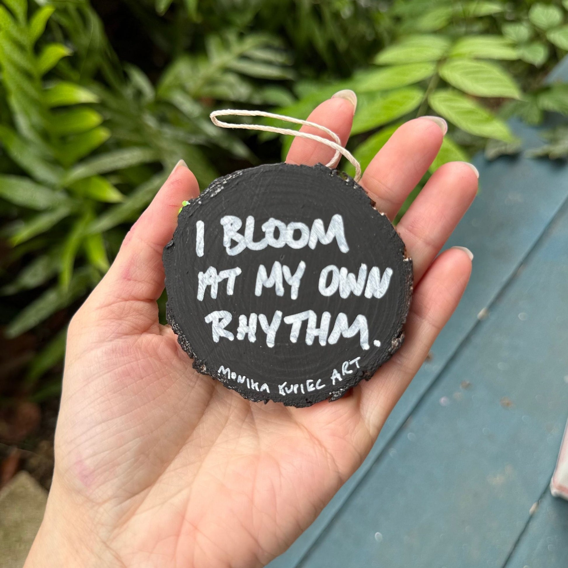 Fill your space with channeled colors + positive messages by displaying this energy infused affirmation wood circle decor on your tree, work desk, nightstand or kitchen.