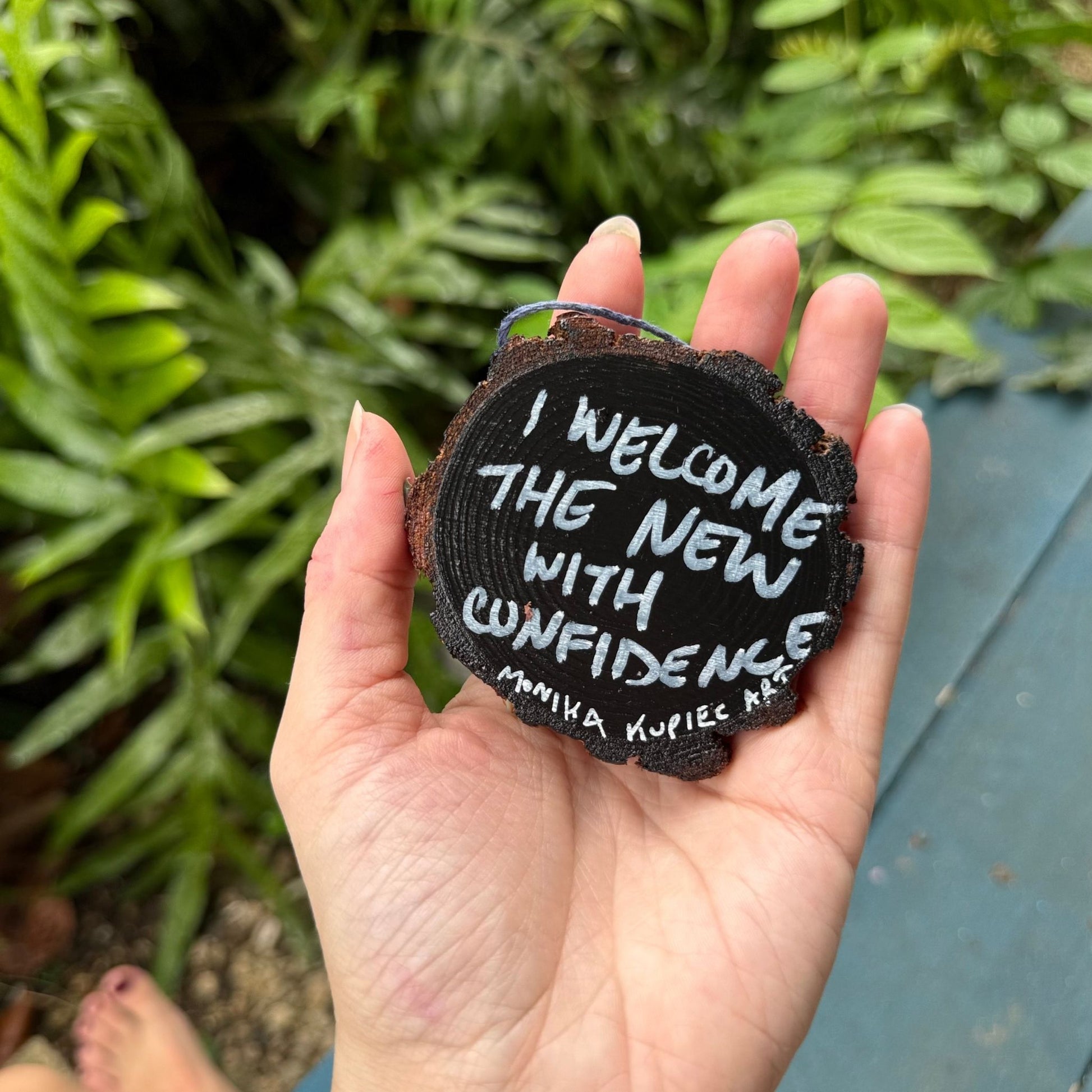 Fill your space with channeled colors + positive messages by displaying this energy infused affirmation wood circle decor on your tree, work desk, nightstand or kitchen.