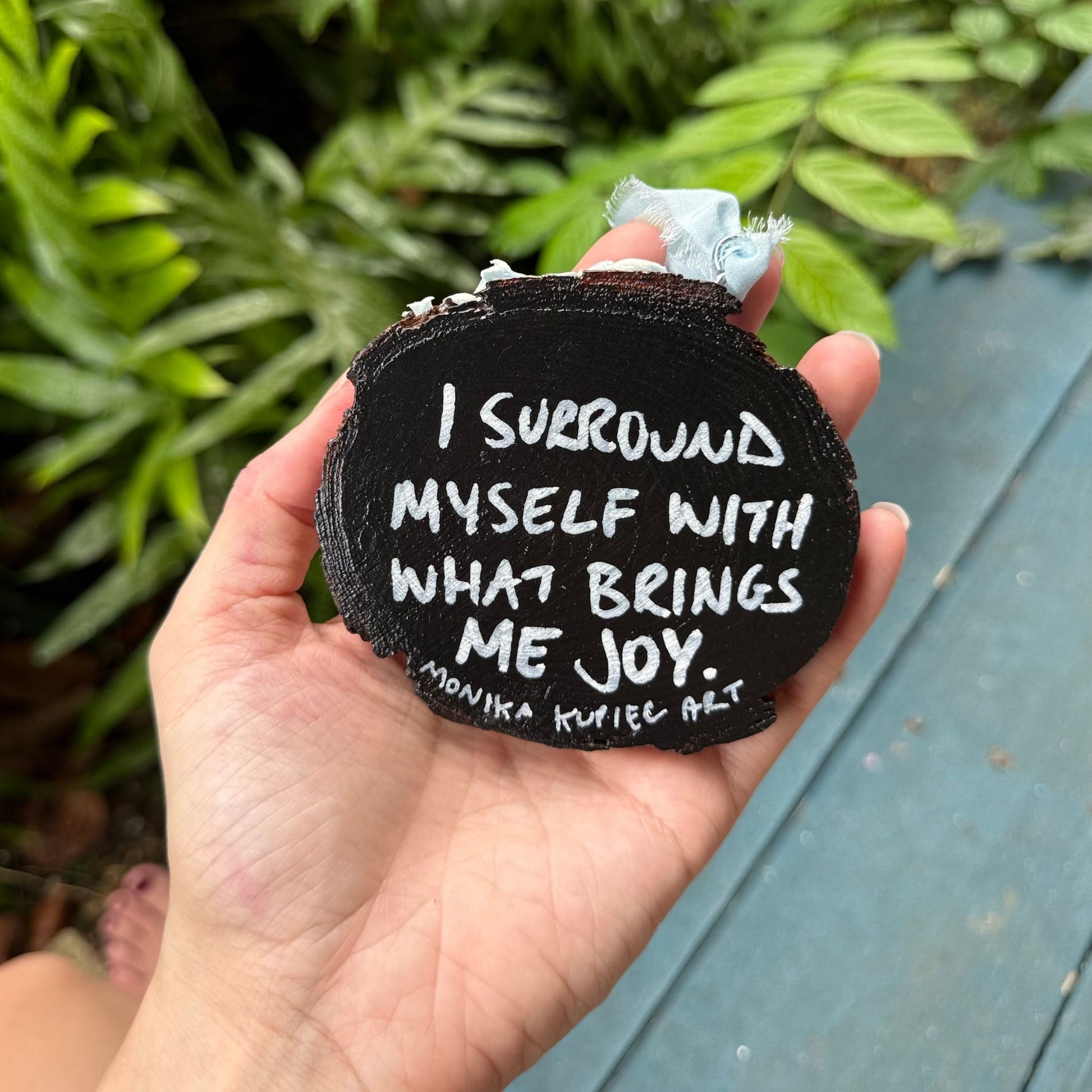 Fill your space with channeled colors + positive messages by displaying this energy infused affirmation wood circle decor on your tree, work desk, nightstand or kitchen.